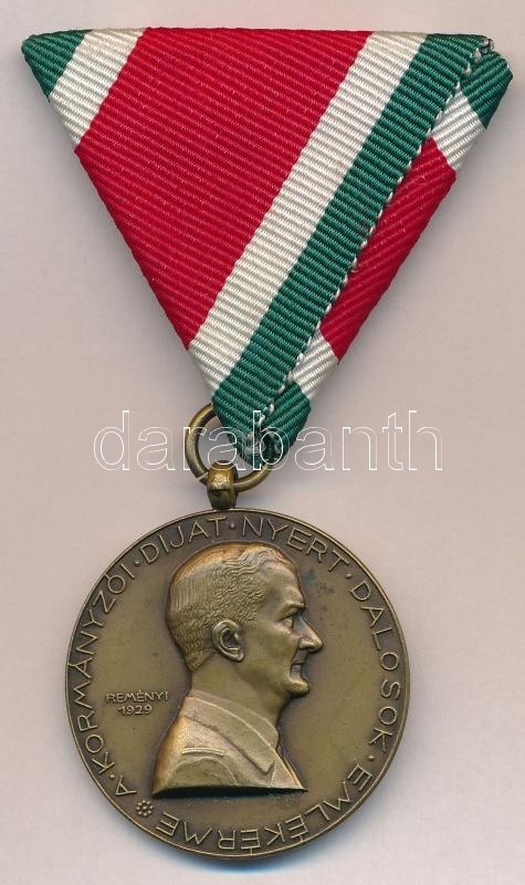 Reményi József (1887-1977) 1929. "A kormányzói díjat nyert dalosok emlékérme / A Magyar Dalosegyesületek Országos Szövetsége" Br érem mellszalagon (35mm) T:2