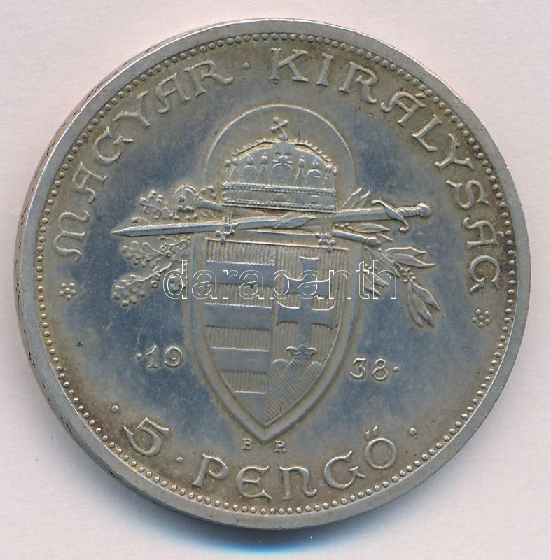 Beschreibung: 1938. 5P Ag "Szent István" T:1-,2 patina