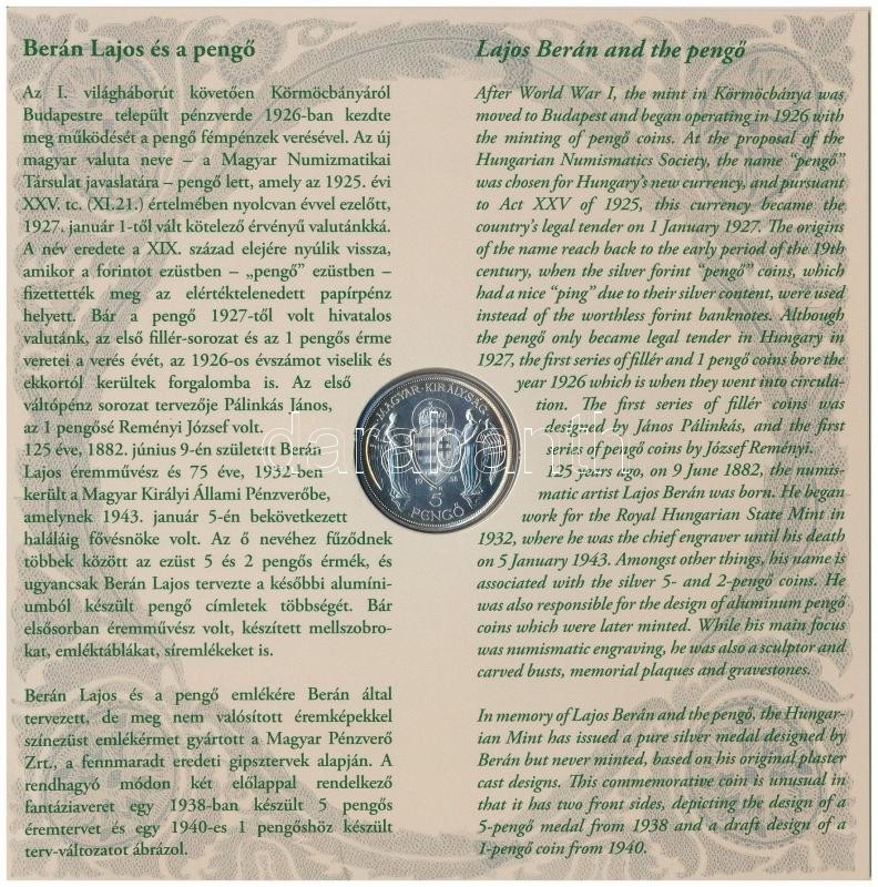 2007. 1Ft-100Ft (8xklf) "Berán Lajos és a pengő" forgalmi sor, benne "Berán Lajos és a pengő" Ag emlékérem (10g/0.999/27mm) T:PP halvány patina