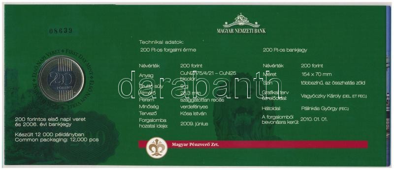 Beschreibung: 2009. 200Ft elsőnapi veret díszcsomagolásban + 2006. 200Ft "FB" "Búcsú a 200Ft-os bankjegytől" T:I,1