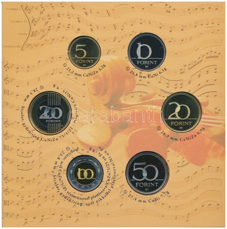 2009. 5Ft-200Ft "Haydn" (7xklf) forgalmi érme sor, benne &qu... https://www.darabanth.com/de/342-Fernauktion/342.0/Numismatik/Ungarische-Munzen-und-Munzen-mit-ungarischem-Munzzeichen~1500008/2009-5Ft-200Ft-Haydn-7xklf-forgalmi-erme-sor-benne-Joseph-Haydn-Ag-emlekerem-12g09992~II1930649