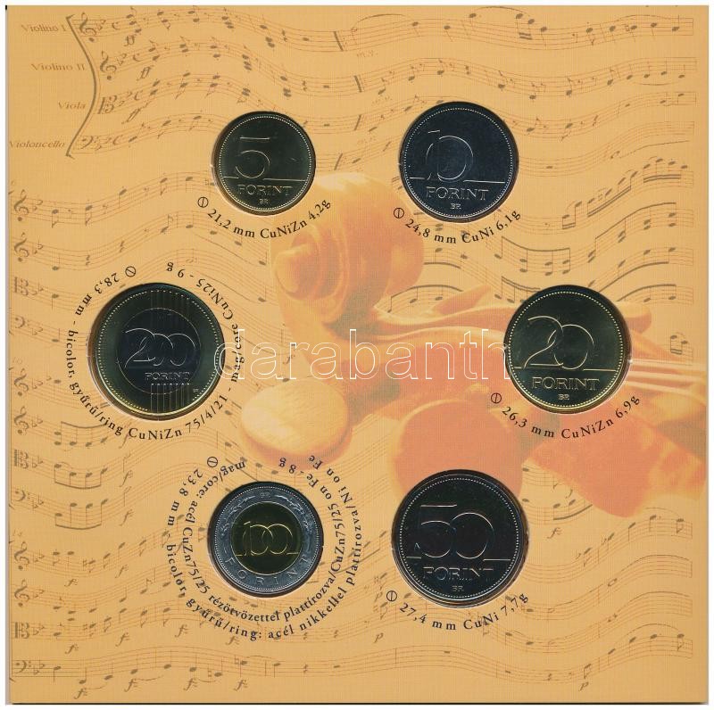 2009. 5Ft-200Ft "Haydn" (7xklf) forgalmi érme sor, benne &qu... https://www.darabanth.com/de/342-Fernauktion/342.0/Numismatik/Ungarische-Munzen-und-Munzen-mit-ungarischem-Munzzeichen~1500008/2009-5Ft-200Ft-Haydn-7xklf-forgalmi-erme-sor-benne-Joseph-Haydn-Ag-emlekerem-12g09992~II1930650