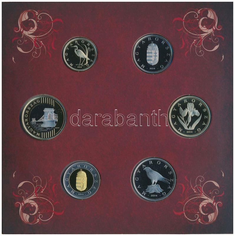2014. 5Ft-200Ft (6xklf) forgalmi sor szettben + 2014. "Mária aran... https://www.darabanth.com/de/342-Fernauktion/342.0/Numismatik/Ungarische-Munzen-und-Munzen-mit-ungarischem-Munzzeichen~1500008/2014-5Ft-200Ft-6xklf-forgalmi-sor-szettben-plus-2014-Maria-aranyforint-aranyozott-Ag-jelzett-ut~II1930661