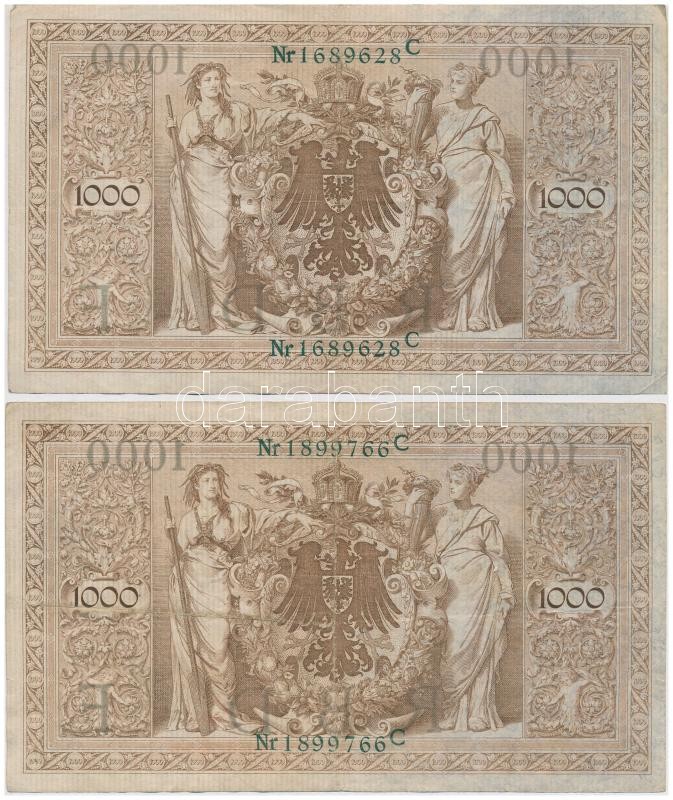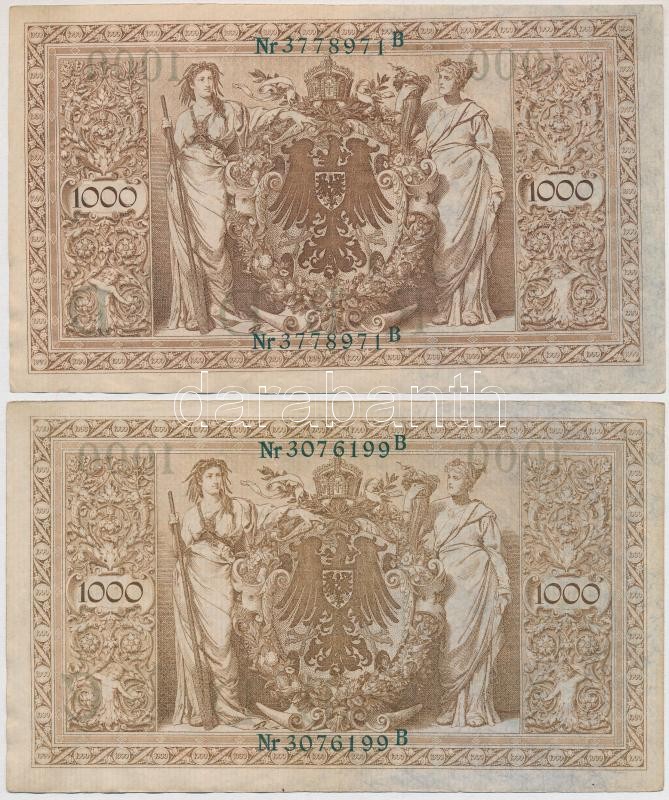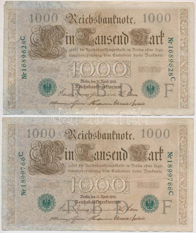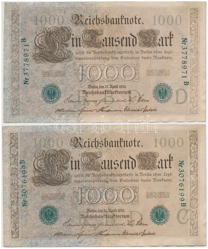 Német Birodalom 1910. 1000M zöld pecsét, hétjegyű sorszámmal (4x) T:III