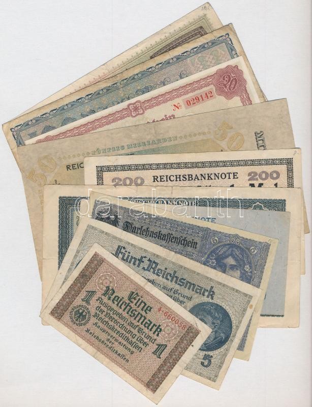 Német Birodalom / Weimar Köztársaság 1917-1945. 10db-os vegyes bankjegy tétel, mind különféle T:III,III-