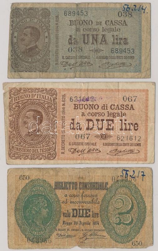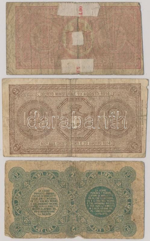 Beschreibung: Olaszország 1874. 2L + 1914. 1L + 2L T:III- egyik ragasztott
