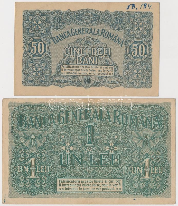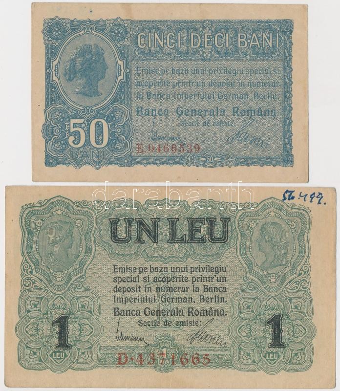 Romania... https://www.darabanth.com/de/342-Fernauktion/342.0/Numismatik/Weltweit-Banknoten~1500012/Romania-Nemet-megszallas-1917-50b-plus-1L-TI-III-szep-papir-Romania-German-Occupation-191~II1928151