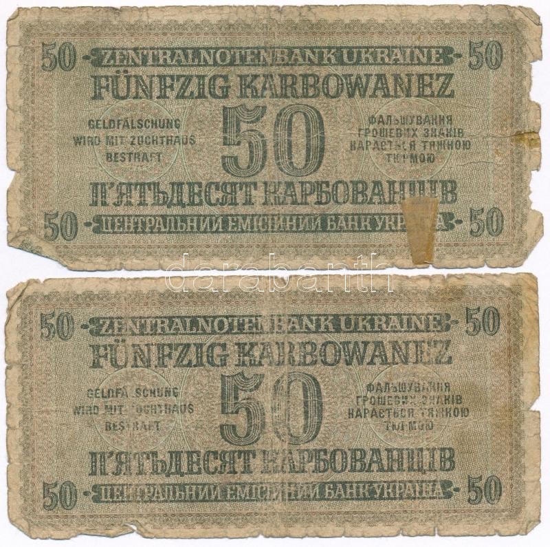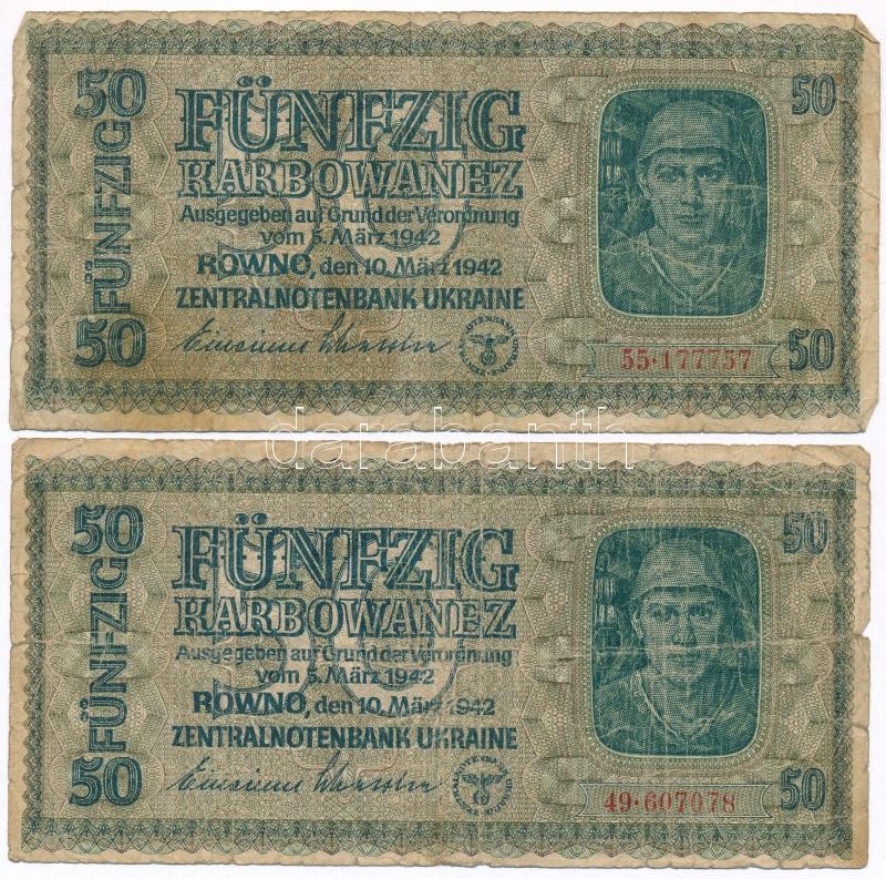 Ukraine / German occ... https://www.darabanth.com/de/342-Fernauktion/342.0/Numismatik/Weltweit-Banknoten~1500012/Ukrajna-Nemet-megszallas-1942-50K-4x-TIV--Ukraine-German-occupation-1942-50-Karbowanez~II1928089