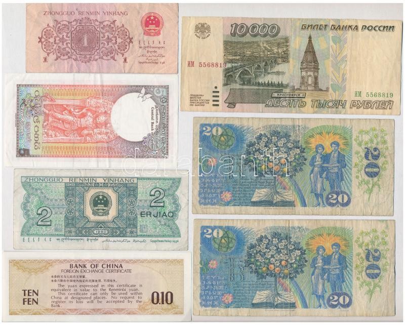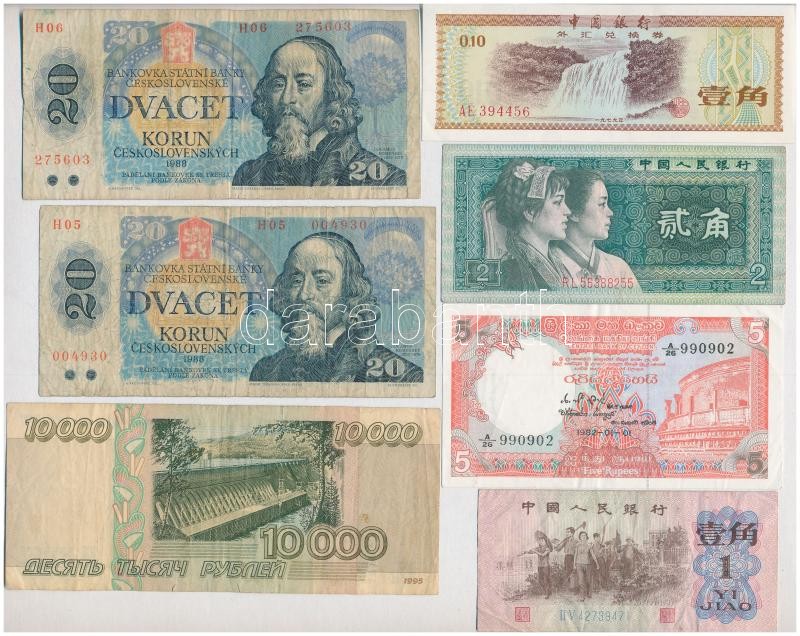 Beschreibung: Vegyes 7db-os bankjegy tétel, benne kínai, csehszlovák, orosz és ceyloni bankjegyek T:III,III-