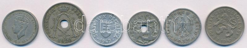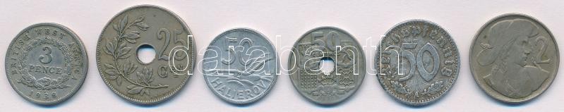 6db-os vegyes külföldi fémpénz tétel, közte érdekesebb darabokkal, Brit Nyugat-Afrika 1938. 3P Cu-Ni; Belgium 1926. 25c Cu-Ni T:2,2-