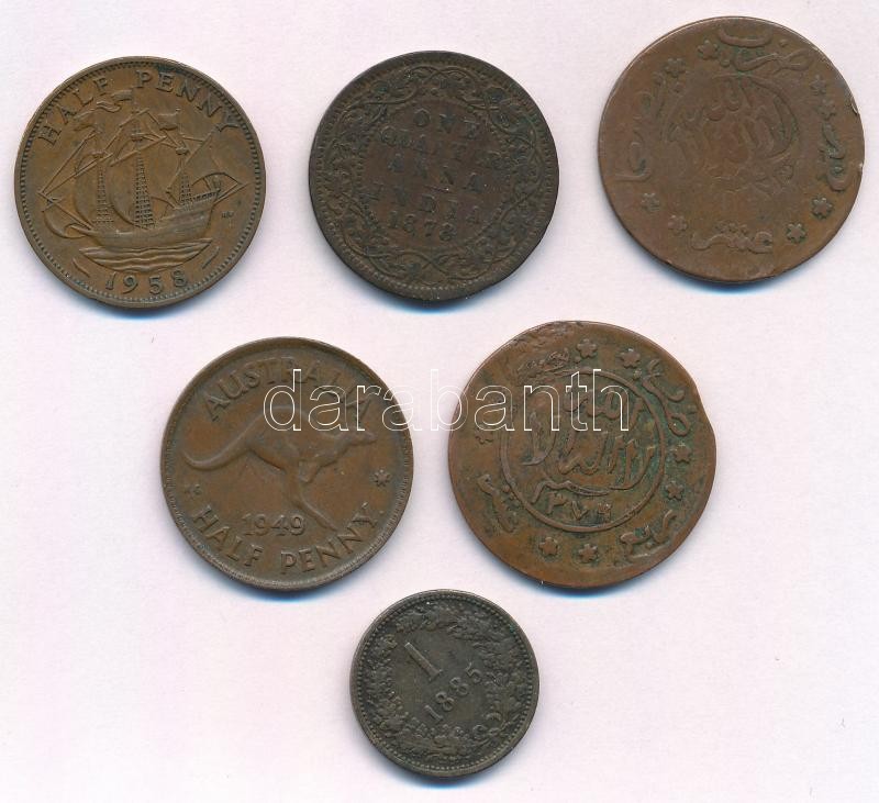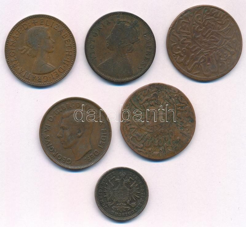 6db-os vegyes külföldi réz- és bronzpénz tétel, közte Ausztrália, Ausztria, Brit-India, Jemen T:2,2-