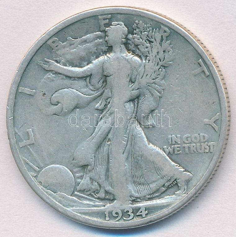 Amerikai Egyesült Államok 1934. 1/2$ Ag "Walking Liberty" T:... https://www.darabanth.com/de/342-Fernauktion/342.0/Numismatik/Weltweit-Munzen~1500013/Amerikai-Egyesult-Allamok-1934-12USD-Ag-Walking-Liberty-T2-3-USA-1934-12-Dollar-Ag-Walking~II1924702