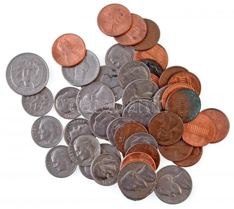 Amerikai Egyesült Államok 48db-os fémpénz tétel, nagyrészt különféle évjárat illetve verdejel T:1--d3