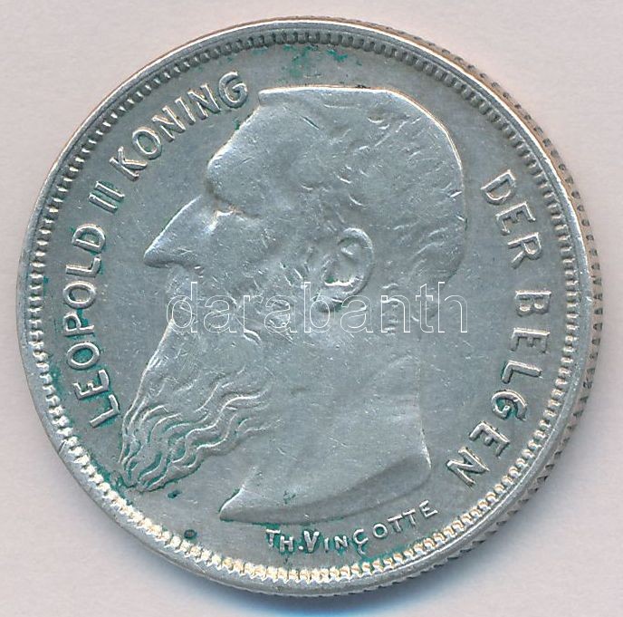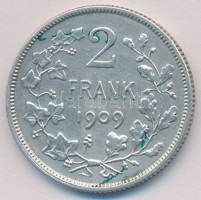 Belgium 1909. 2Fr Ag "II. Lipót" holland körirat T:2 fo. Belgium 1909. 2 Francs Ag "Leopold II" Dutch legend C:XF spotted Krause KM#59