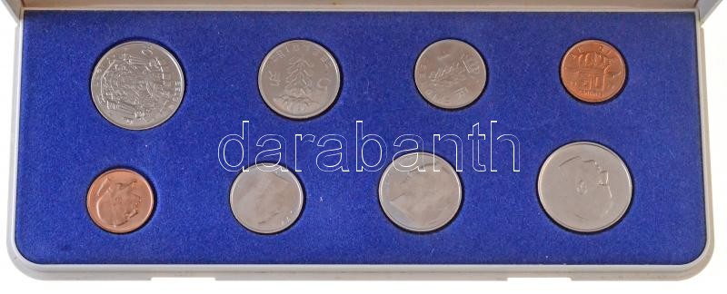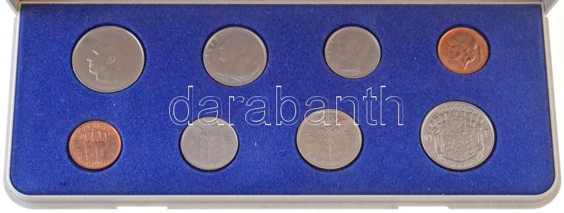 Belgium 1977. 50c-10Fr (4xklf) forgalmi sor francia felirattal + 1977. 50c-10Fr (4xklf) forgalmi sor flamand felirattal, közös dísztokban T:1 Belgium 1977. 50 Centimes - 10 Francs (4xdiff) coin set with French legend + 1977. 50 Centimes - 10 Francs (4xdifF) coin set with Flamand legend, in display case C:UNC