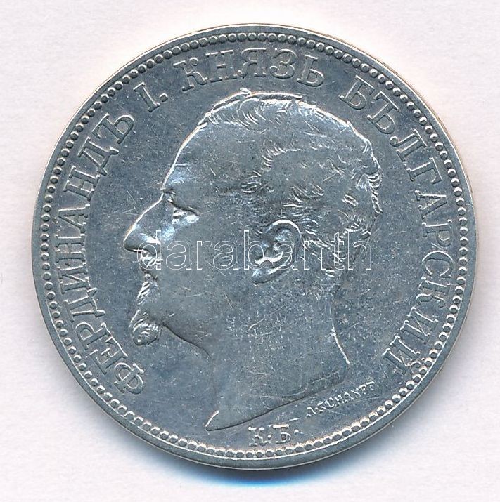 Bulgária 1891KB 2L Ag "I. Ferdinánd" Körmöcbánya T:2 Bulgaria 1891KB 2 Leva Ag "Ferdinand I" Kremnitz C:XF Krause KM#17