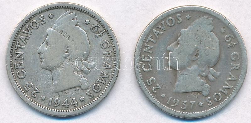 Dominika 1937-1944. 25c Ag (2xklf) T:2- Dominican Republic 1937-1944. 25 Centavos Ag (2xdiff) C:VF Krause KM#20