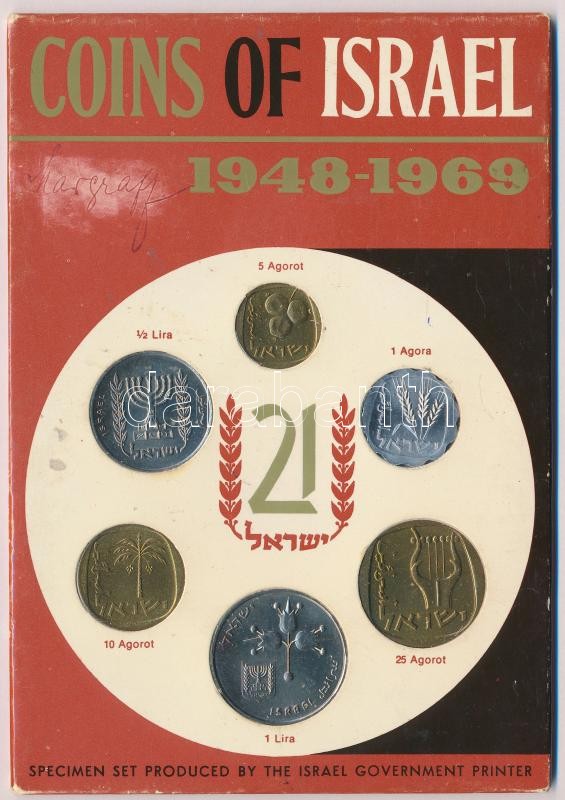 Israel 1969. 1 Agora - 1 Lira (6xdiff) "21st Anniversary 1949-1969" coin set in cardboard case C:UNC,AU
