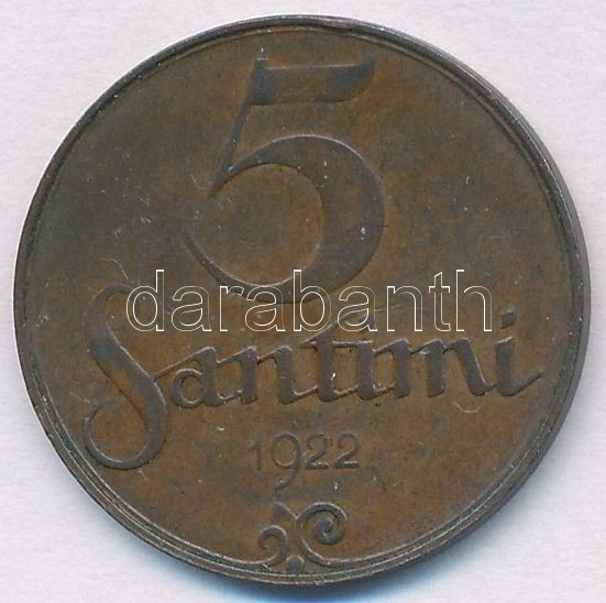 Latvia 1922. 5 Santini Br C:XF https://www.darabanth.com/de/342-Fernauktion/342.0/Numismatik/Weltweit-Munzen~1500013/Lettorszag-1922-5s-Br-T2-Latvia-1922-5-Santini-Br-CXF~II1925065
