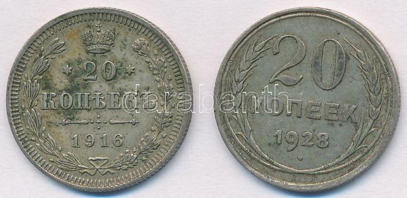 Beschreibung: Orosz Birodalom 1916. 20k Ag + Szovjetunió 1928. 20k Ag T:2 patina
