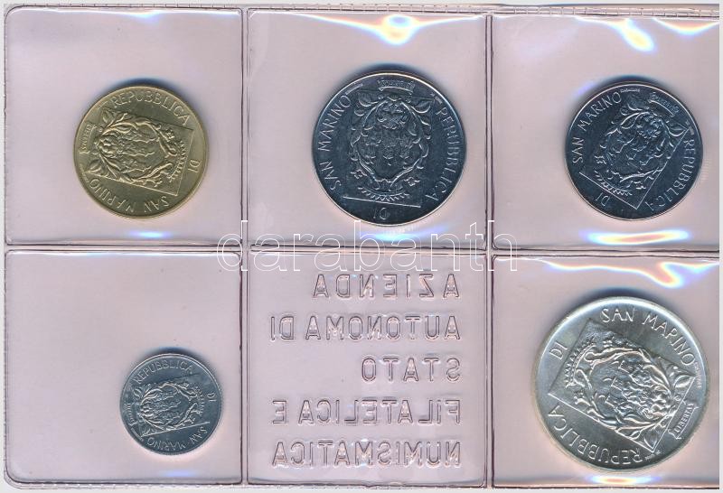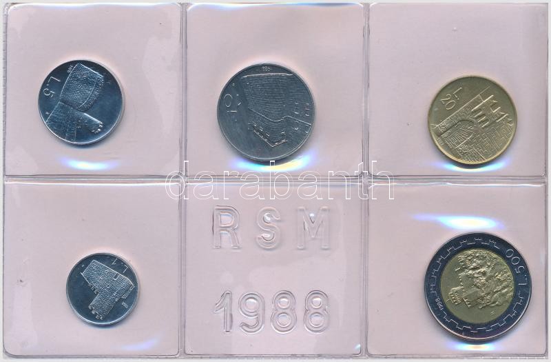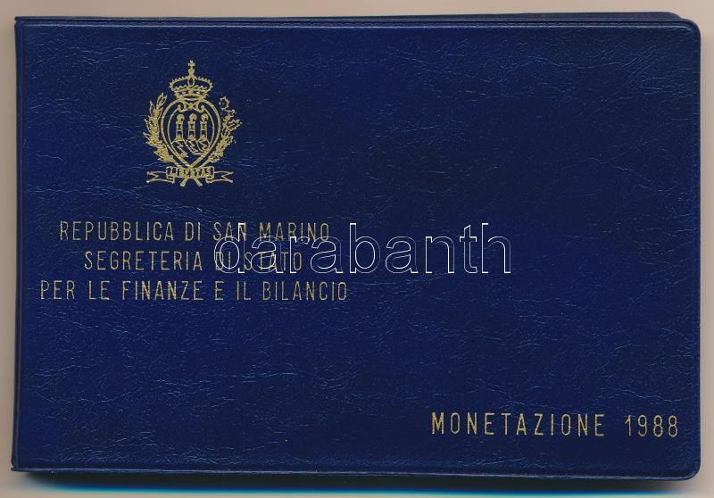 San Marino 1988. 1L-1000L (10xklf) forgalmi sor, dísztokban, tanúsítvánnyal, közte 1988. 1000L Ag "Erődítmény" T:1