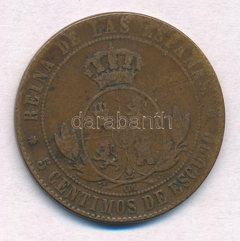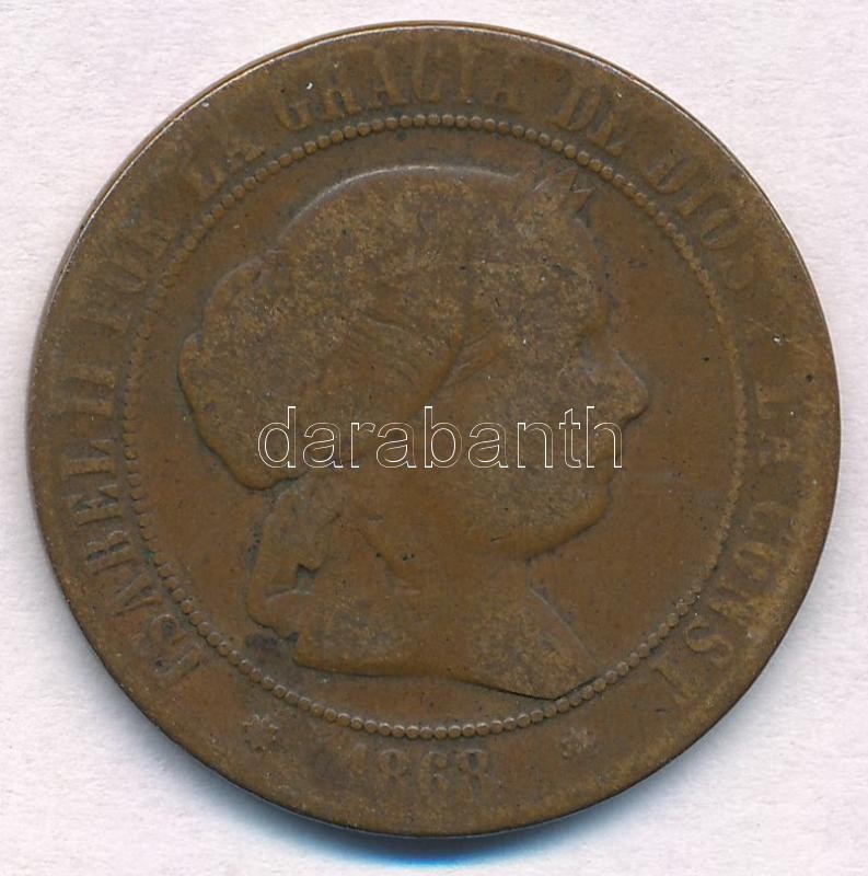 Spanyolország 1868OM 5c Cu "II. Izabella" T:3 Spain 1868OM 5 Centimos Cu "Isabella II" C:F Krause KM#635.1