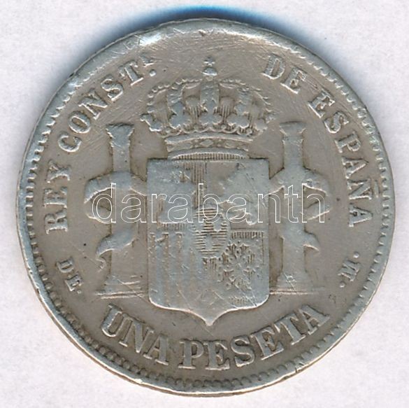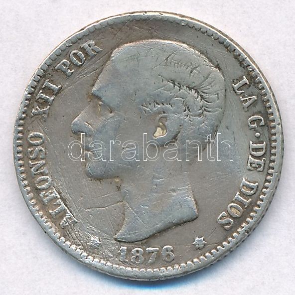 Spanyolország 1876DE-M 1P Ag "XII. Alfonz" T:2- Spain 1876DE-M 1 Peseta Ag "Alfonso XII" C:VF Krause KM#672