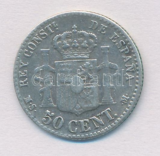 Spain 1... https://www.darabanth.com/de/342-Fernauktion/342.0/Numismatik/Weltweit-Munzen~1500013/Spanyolorszag-1880MS-M-50c-Ag-XII-Alfonz-T2-u-Spain-1880MS-M-50-Centimos-Ag-Alfonso-XII-C~II1903090