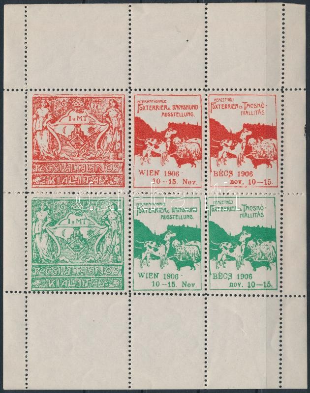Beschreibung: 1906 Pécsi általános kiállítás/ Foxterrier és tacskó kiállítás, Bécs 1904 levélzáró kisív