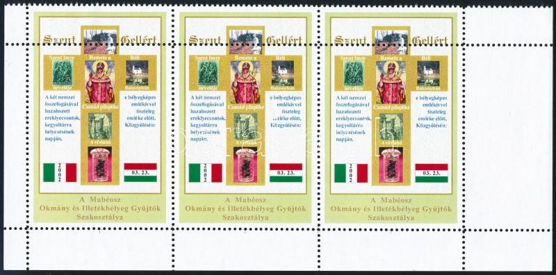 Beschreibung: 2002 Szent Gellért levélzáró teljes ív + képbe fogazott hármascsík levélzáró