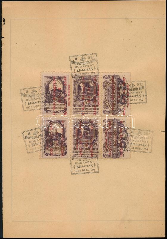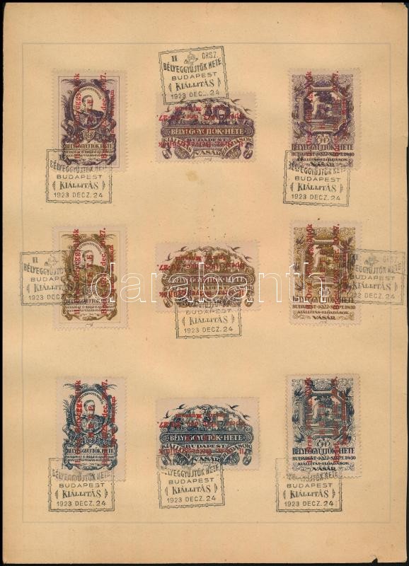 Beschreibung: 27 db magyar levélzáró bélyeggyűjtési témában 3 papírlapon alkalmi bélyegzésekkel, közte felülnyomott változatok