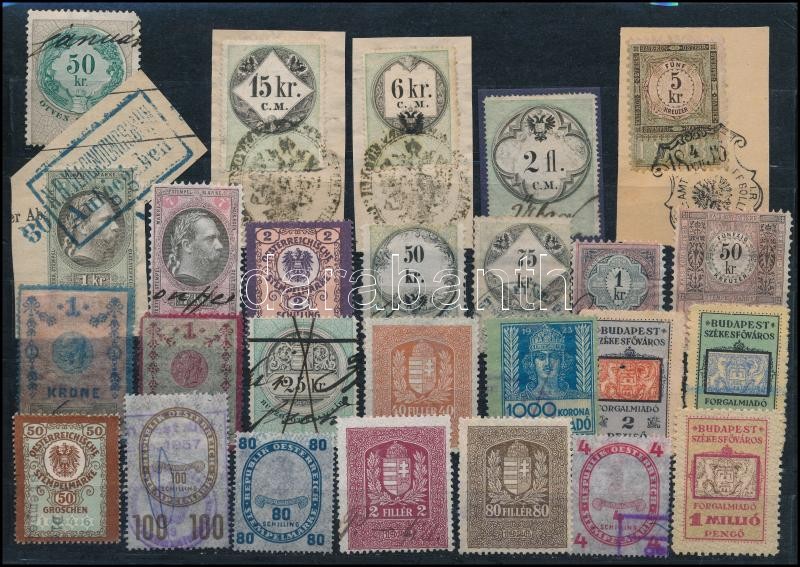 26 db régi magyar és osztrák okmánybélyeg https://www.darabanth.com/de/342-Fernauktion/342.0/Philatelie-und-Postgeschichte-Ungarn/Stempelmarken~500017/26-db-regi-magyar-es-osztrak-okmanybelyeg~II1931749