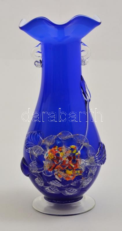 Beschreibung: Gazdagon díszített fúj váza, plasztikus rátétekkel, jelzés nélkül, karcolással, m: 24 cm