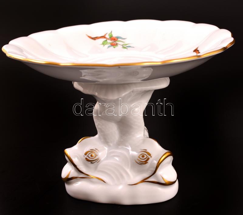 Beschreibung: Herendi csipkebogyó mintás halas kínáló, kézzel festett, jelzett, apró kopás nyomokkal, m:10 cm, d:14 cm