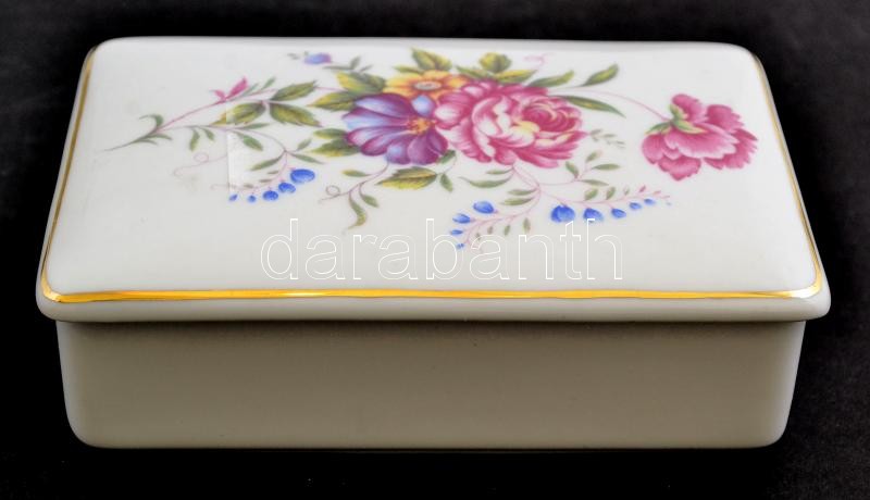 Hollóházi virág mintás doboz, matricás, jelzett, apró kopás nyomokkal,... https://www.darabanth.com/de/342-Fernauktion/342.0/Porzellan-Keramik-Glass/Porzellan~500008/Hollohazi-virag-mintas-doboz-matricas-jelzett-apro-kopas-nyomokkal-13-5C3979-cm~II1925925