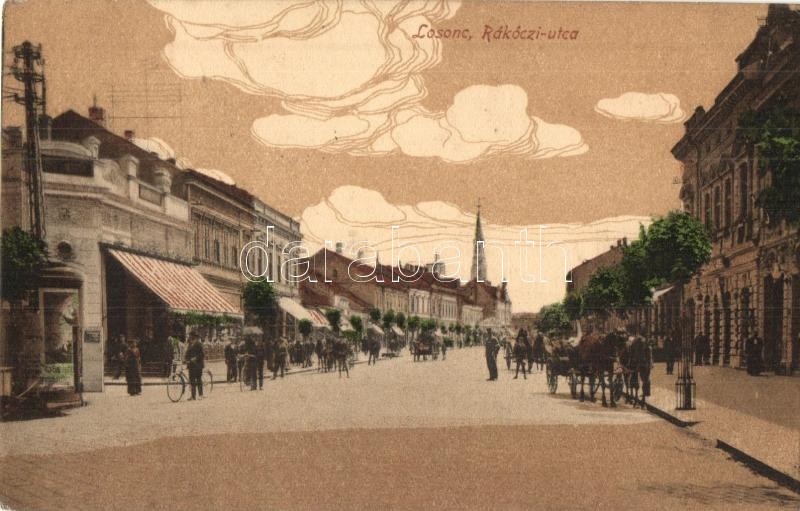 Losonc, Lucenec; Rákóczi utca, üzletek, férfi kerékpárral. Kiadja Bics... https://www.darabanth.com/de/343-Fernauktion/343.0/Ansichtskarten/Slowakei~2000010/Losonc-Lucenec-Rakoczi-utca-uzletek-ferfi-kerekparral-Kiadja-Bicskei-Zoltan-street-vie~II1937580