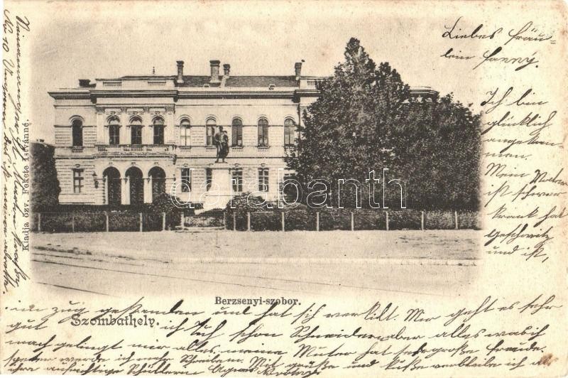 1902 Szombathely, Berzsenyi szobor. Kiadja Özv. Fekete Istvánné (fl) https://www.darabanth.com/de/343-Fernauktion/343.0/Ansichtskarten/Ungarn~2000008/1902-Szombathely-Berzsenyi-szobor-Kiadja-Ozv-Fekete-Istvanne-fl~II1938074