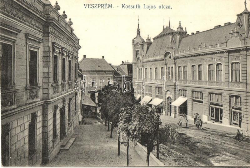 1912 Veszprém, Kossuth Lajos utca. Kiadja a Pongrácz dohánytőzsde https://www.darabanth.com/de/343-Fernauktion/343.0/Ansichtskarten/Ungarn~2000008/1912-Veszprem-Kossuth-Lajos-utca-Kiadja-a-Pongracz-dohanytozsde~II1933950