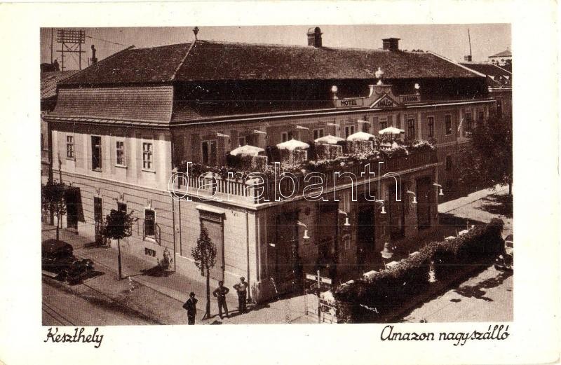 Keszthely, Hotel Amazon szálloda, automobil (EK) https://www.darabanth.com/de/343-Fernauktion/343.0/Ansichtskarten/Ungarn~2000008/Keszthely-Hotel-Amazon-szalloda-automobil-EK~II1938068