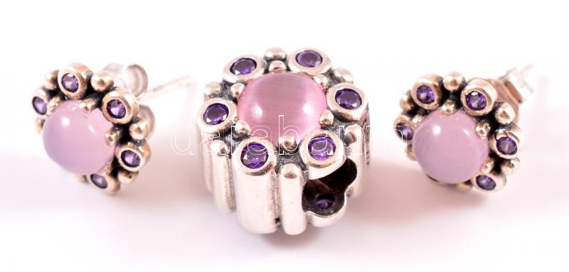 Beschreibung: Ezüst(Ag) Pandora charm + fülbevalópár, 3 db, jelzett, bruttó: 5,2 g