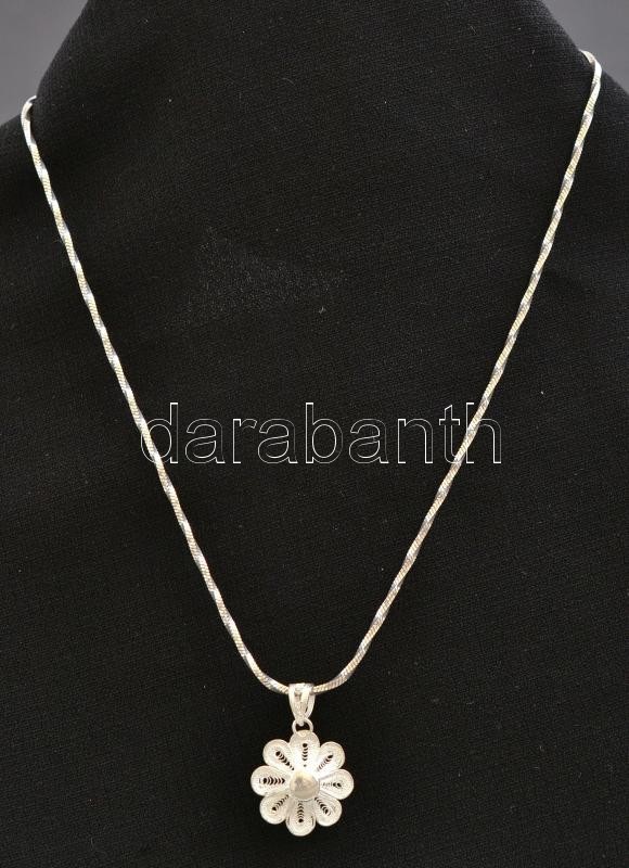 Ezüst(Ag) csavart nyaklánc, filigrán virág függővel, jelzett, h: 39 cm... https://www.darabanth.com/de/343-Fernauktion/343.0/Juwelen/Juwelen~500001/EzustAg-csavart-nyaklanc-filigran-virag-fuggovel-jelzett-h-39-cm-2-5C3972-cm-netto-6-4~II1933328