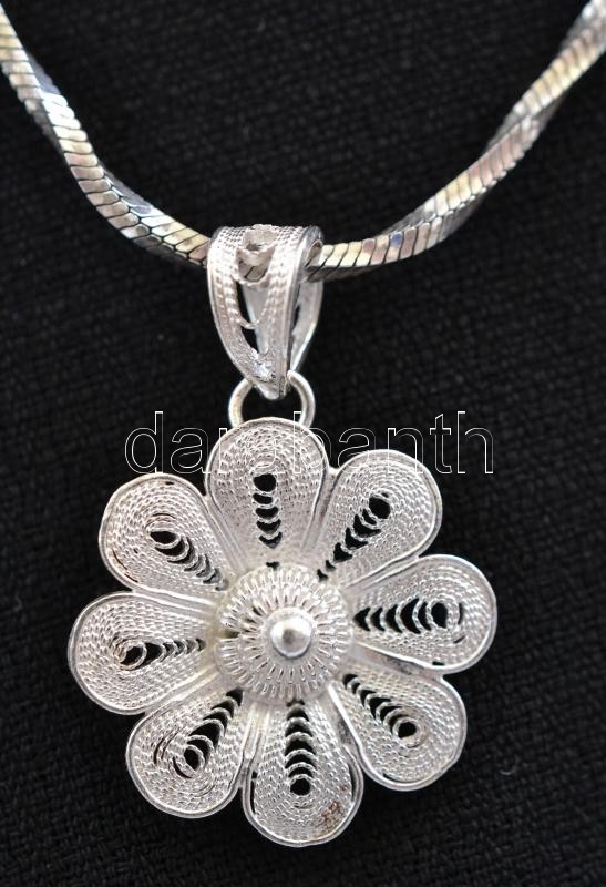 Beschreibung: Ezüst(Ag) csavart nyaklánc, filigrán virág függővel, jelzett, h: 39 cm, 2,5×2 cm, nettó: 6,4 g