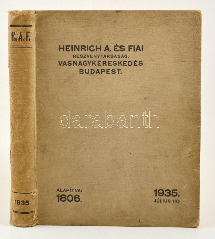 1935 Heinrich A. és Fiai Rt. Vasnagykereskedés (Heinrich-udvar) árjegyzéke. 1935. július.