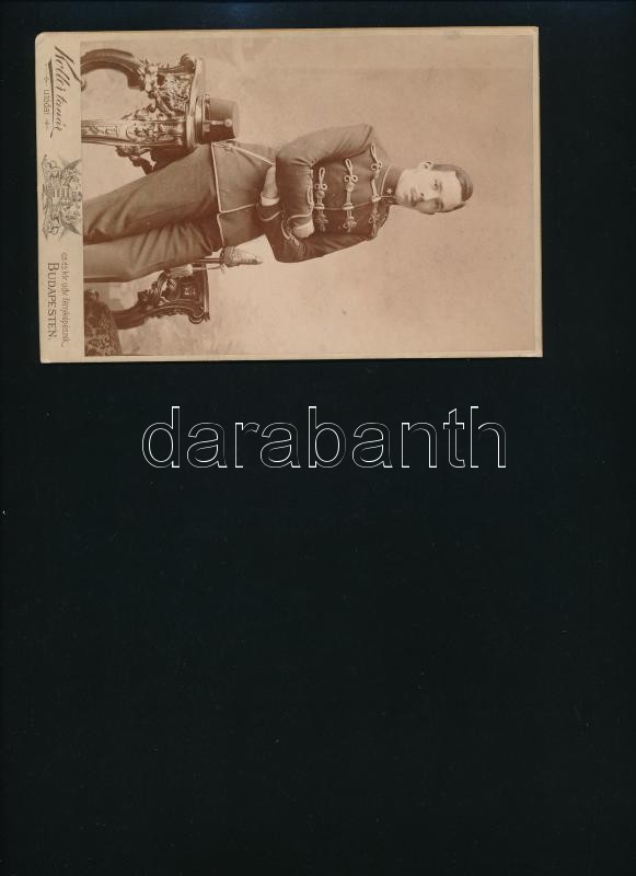 cca 1900 Kunz Géza (1878-1905) cs. és kir. huszár hadnagy, későbbi főhadnagy keményhátú fotója, Dr. Kuncz Jenő (1844-1926) ügyvéd, jogfilozófus, szociológus, közgazdász fia, Bp., Koller Károly tanár utódai, 17x11 cm