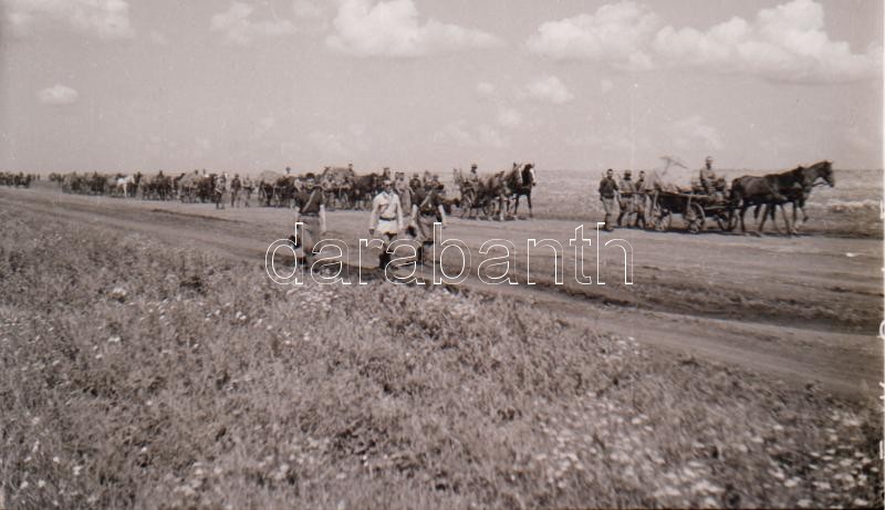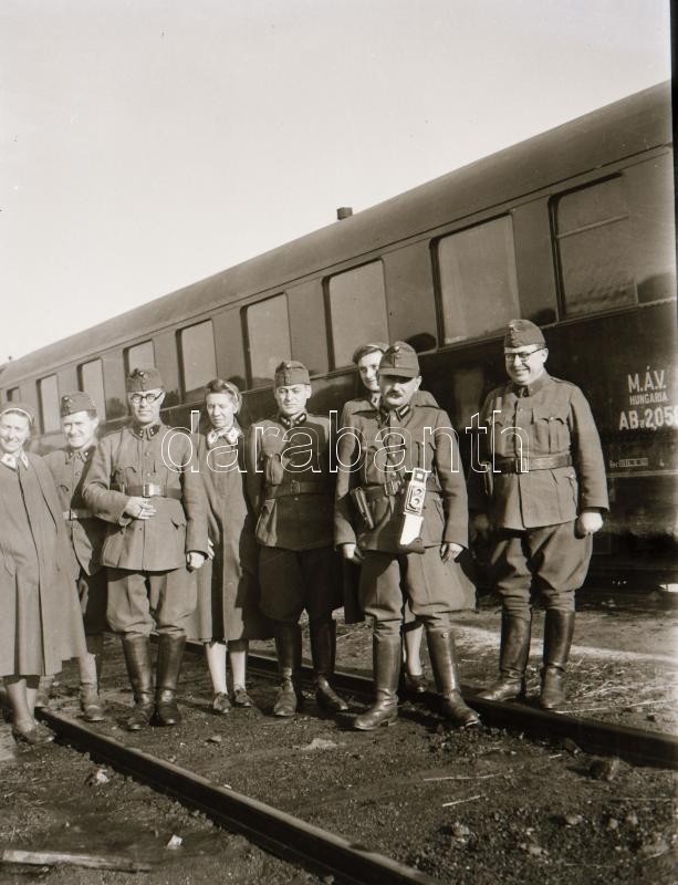 cca 1942 Thöresz Dezső (1902-1963) békéscsabai gyógyszerész és fotóművész szolgálatot teljesített egy sebesültszállító vonaton Bp. és Kijev között, és elkísérte a 2. magyar hadsereg kivonulását is a Don-kanyarhoz. Hagyatékában fennmaradtak az általa, út közben készített felvételek. Ebben a tételben 13 db vintage negatív szerepel, 6x6 cm és 4,5x6 cm