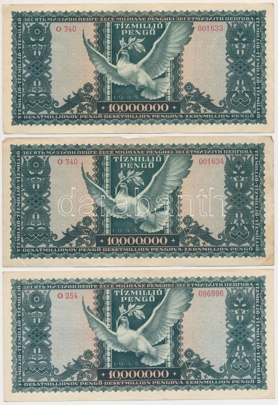1945. 10.000.000P (4x) egy sorszámkövető pár alacsony sorszámmal, vala... https://www.darabanth.com/de/343-Fernauktion/343.0/Numismatik/Ungarische-Banknoten~1500007/1945-10000000P-4x-egy-sorszamkoveto-par-alacsony-sorszammal-valamint-egy-ketugrasos-sor~II1936496