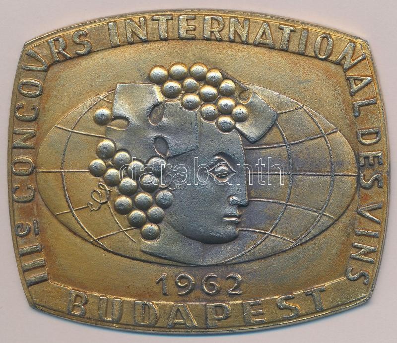 1962. "III. Nemzetközi Borverseny Budapest" fém emlékplakett (77x64mm)... https://www.darabanth.com/de/343-Fernauktion/343.0/Numismatik/Ungarische-Gedenkmunzen-Plaketten~1500009/1962-III-Nemzetkozi-Borverseny-Budapest-fem-emlekplakett-77x64mm-T2~II1923308