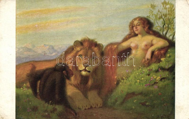 Eine Frage / Erotic nude art postcard, lion s: Th. Grätz (EK) https://www.darabanth.com/de/344-Fernauktion/344.0/Ansichtskarten/Erotik~1500056/Eine-Frage-Erotic-nude-art-postcard-lion-s-Th-Gratz-EK~II948265