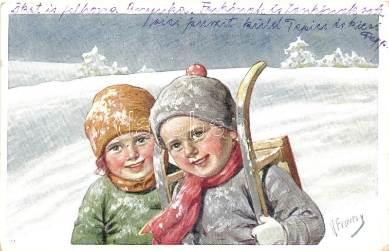 Children with sledge, B.K.W.I. 613-4. s: Feiertag (EK) https://www.darabanth.com/de/344-Fernauktion/344.0/Ansichtskarten/Kinder~1500060/Children-with-sledge-BKWI-613-4-s-Feiertag-EK~II935021