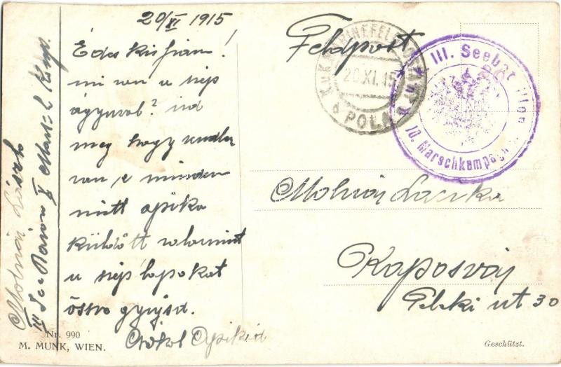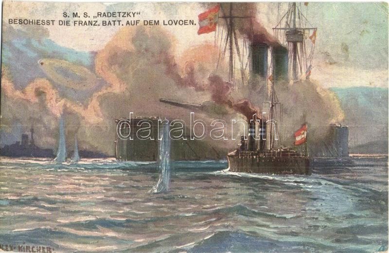 SMS Radetzky beschiesst die franz. Batt. auf dem Lovcen / WWI Austro-Hungarian Navy K.u.K. Kriegsmarine SMS Radetzky battleship bombarding the French. M. Munk, Wien Nr. 990. s: Alex Kircher + K.u.K. III. Seebataillon 10. Marschkompagnie (EK)